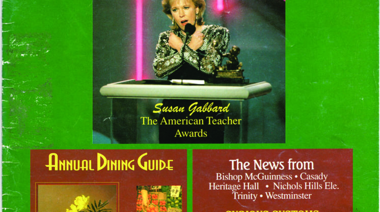 The January-February issue of 1997 was the very first Nichols Hills News, a fact we almost missed because a misprint on the cover had it as 1996—not the most auspicious beginning. The first issue had separate pages for Casady, Heritage Hall, and Bishop McGuinness, as well as elementary school news, a home feature, and “restaurant row news,” with stories about The Metro, Coach House, Iguana Lounge, and Portobello … three of the four of which are no