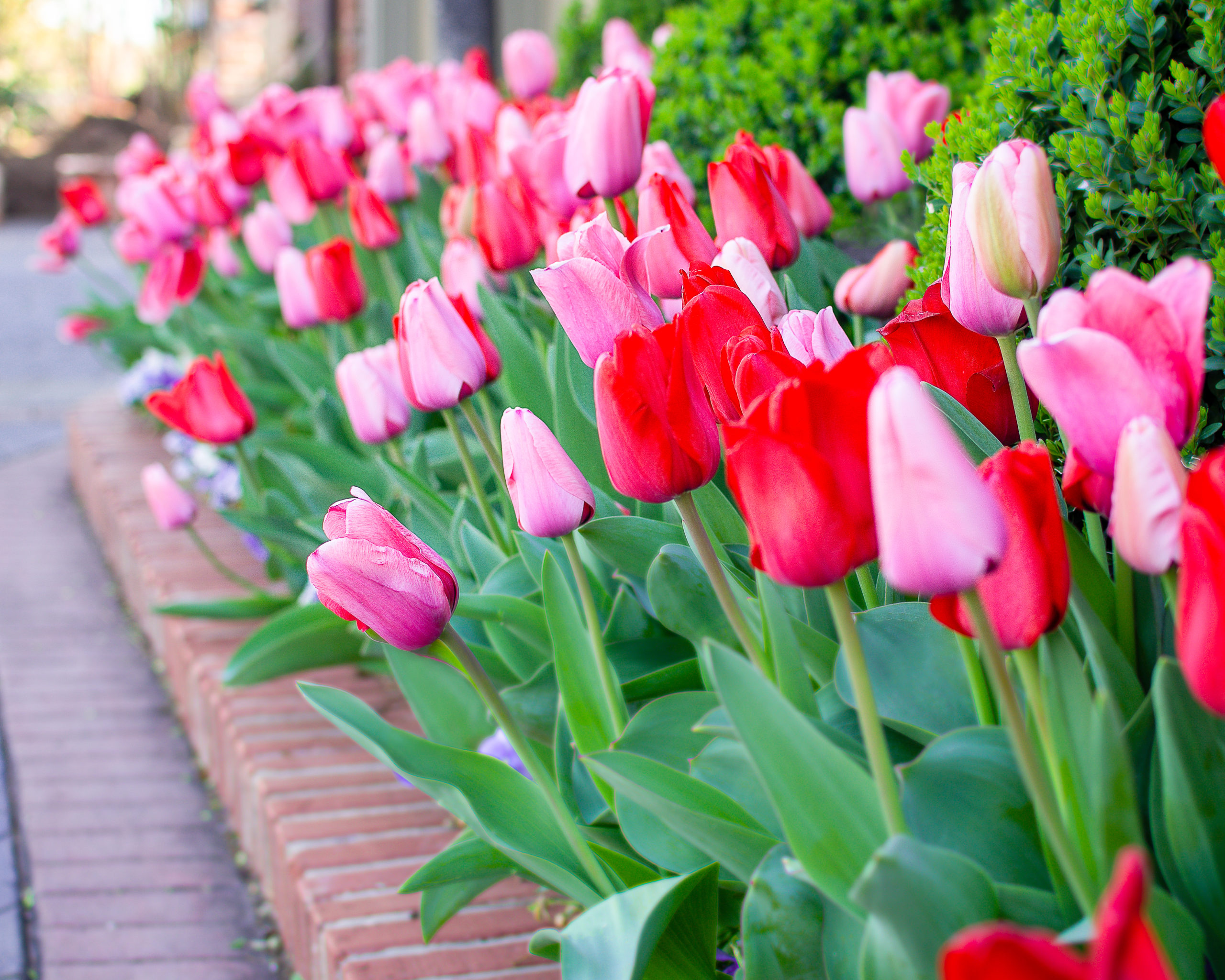 “The perennials will only come up for three years, and each year the yield is sparser,” she said. “For the best effect, we start with new bulbs each year, and I pick the color based on what I think will look best. Since they’re planted in front of red brick, I never choose red.”
