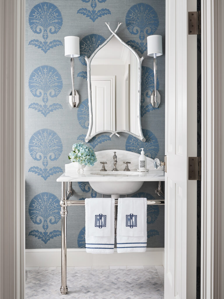 “We felt like we really needed a ‘wow’ moment when you walk in the front door; the dining room is right off the front door and just kind of envelops you,” said Crooks, adding that the wallpaper was a favorite find. “There’s a little bit of a garden feel to it, and it kind of tied all of the elements of the project together. We really used it as a jumping-off point for some of the color selections through the rest of the house.”