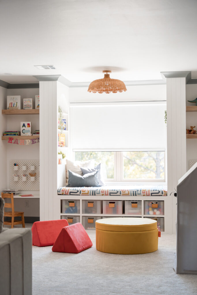 Through diligent planning, the attic space now houses a playroom, bedroom, bathroom and a versatile kitchenette. A window seat with built-in desks creates a perfect homework and reading nook for the children. Everything was strategically designed to grow with the Muller family over the years.