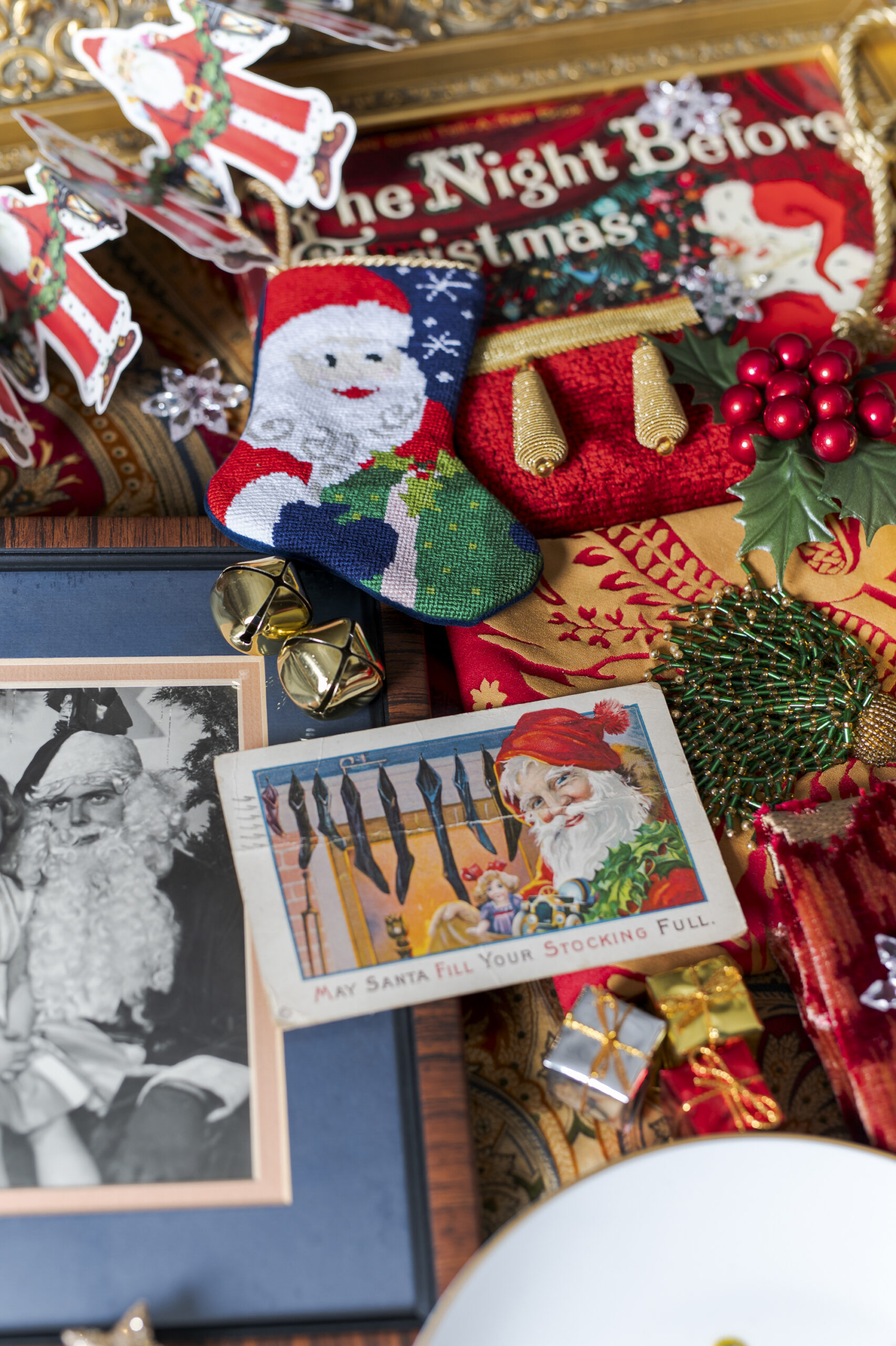 Keven Calonkey Carl and Cassidy Brunsteter of Mister Robert Fine Furniture and Design collaborated on this wonderfully whimsical display. It overflows with odes to St. Nicholas. Carl pointed out a few highlights from her childhood: a cherished photo of her on Santa’s lap and a familiar book, The Night Before Christmas. She remembers many readings throughout the years.