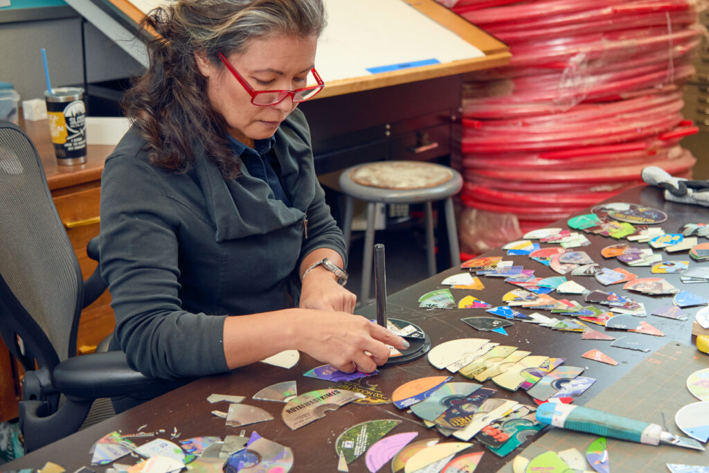 LB: I hope they feel wonder. So much of our world can dull that feeling, but art can inspire and re-inspire curiosity. You might start to wonder about where all these CDs came from. You may start to search for CDs that you did or didn’t have. Think, “Oh, funny, someone’s wedding album is here next to an AOL CD.” It’s participating in the story and feeling a sense of joy and awe. A sense of discovery inspires me, and I’m grateful to the team at Oklahoma Contemporary for the opportunity to share it.