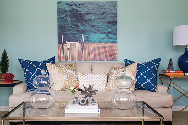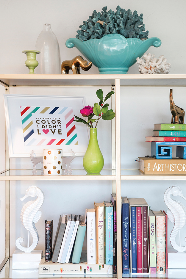 “It’s similar to my fashion sense,” says Rachel. “I like wearing high heels, but I might pair them with jeans and a striped shirt.” The image of a classy, casual denim-and-crisp-shirt motif is one that becomes obvious when walking through the spacious but cozy residence. Various shades of blue, often paired with white, are always liberally sprinkled with color.