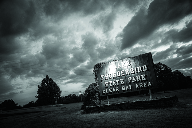 Completed in 1965, a mile-and-a-half-long dam stopped up the Little River to create Lake Thunderbird, one of Oklahoma’s many artificial lakes. It soon became a popular place for swimming, fishing and boating, but a terrible rash of drownings in the 1980s prompted visitors to suspect there was something sinister about the lake. Rumors began to spread that an ancient Indian burial ground had been covered up, although there has never been archeological evidence showing Native American settlement in the Norman area. Others suggested it was the ghosts of Dave and Jim Blue, defending their stash of gold said to be hidden under a rock outcropping on what was once Little River. They supposedly died in a shootout with a posse that raided their hilltop outpost south of town, and a skull with a large caliber bullet hole found in the lake in 2006 may very well have been one of theirs.
