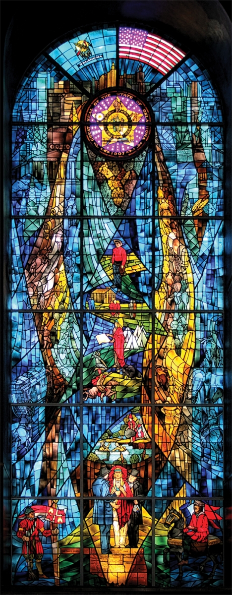 Twelve unique installations from around the state – from a 500-year-old Renaissance masterpiece in Nowata to a window that responds to an act of violence with the determination to rebuild – offer an overview of a century of evolving styles and vantage points as Oklahomans view their stories through great panes of the Great Plains.