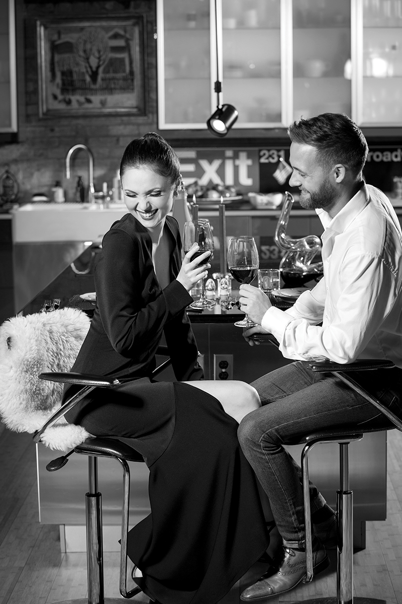 An intimate dinner for two is served; Jessi is wearing a Stella Thomas Designs black custom dress and Kris’ white shirt is from Ty Hirtzel.