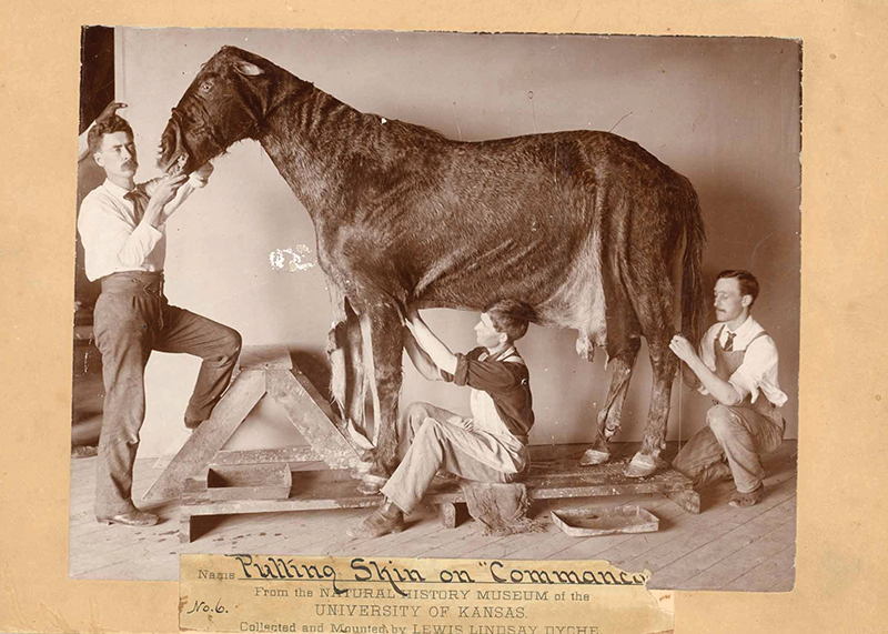 But cavalry officers were not ready to say goodbye. The story goes that Lewis Lindsay Dyche, a naturalist and taxidermist at the University of Kansas, offered to waive his $400 fee if the university could keep the horse. Dyche created a life-sized frame of wood, wire and clay and preserved and fitted the skin to fit.