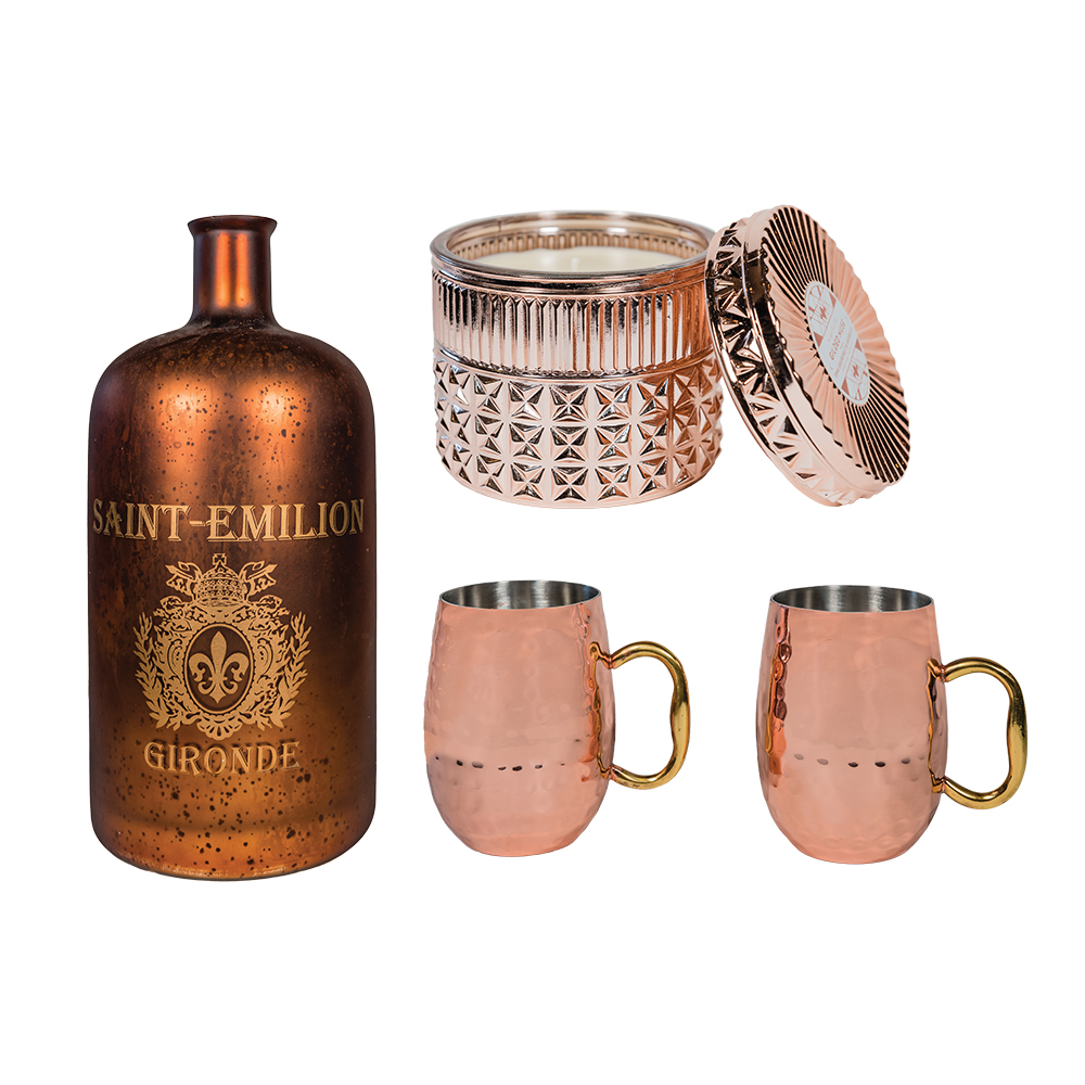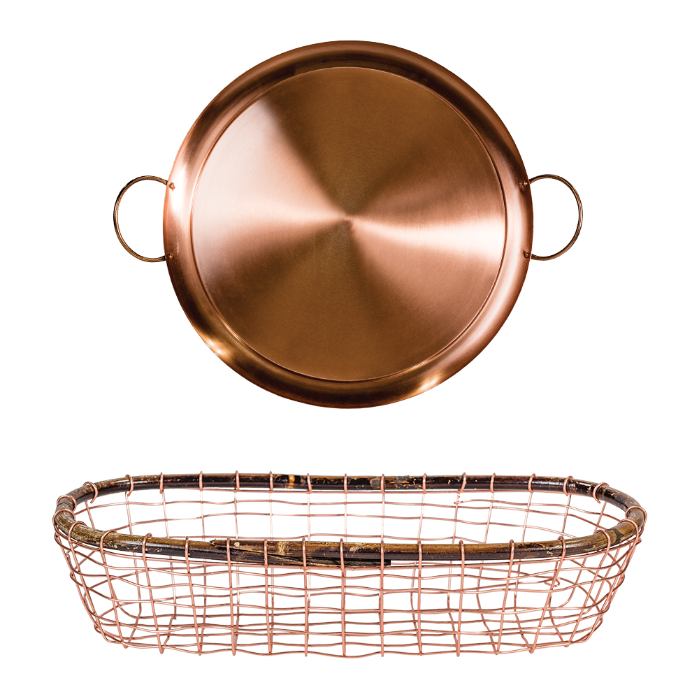 When it comes to the kitchen, copper is in a category of its own. Professional chefs of the world swear by the material for even heating and non-stick ease – and who are we to argue? No doubt, copper is on the higher end of the price and quality scale when it comes to cooking. But what about in the entertaining arena? It isn’t difficult to find items in this shiny metal, and with the popularity of such drinks as the Moscow Mule, the copper mug is an essential in your cabinet. Because copper has an insulating element that helps maintain the temperature of whatever your drink of choice, hot drinks are a success in these mugs, as well. Plus, shakers, jiggers and accessories to help you make these drinks are readily available, not to mention items that might add to the mood of your gathering. A vase, a candle, baskets and serving trays … the possibilities are plentiful. You may have to rub more than two shiny copper pennies together to get those pots and pans, but these elements of style are well within reach.
