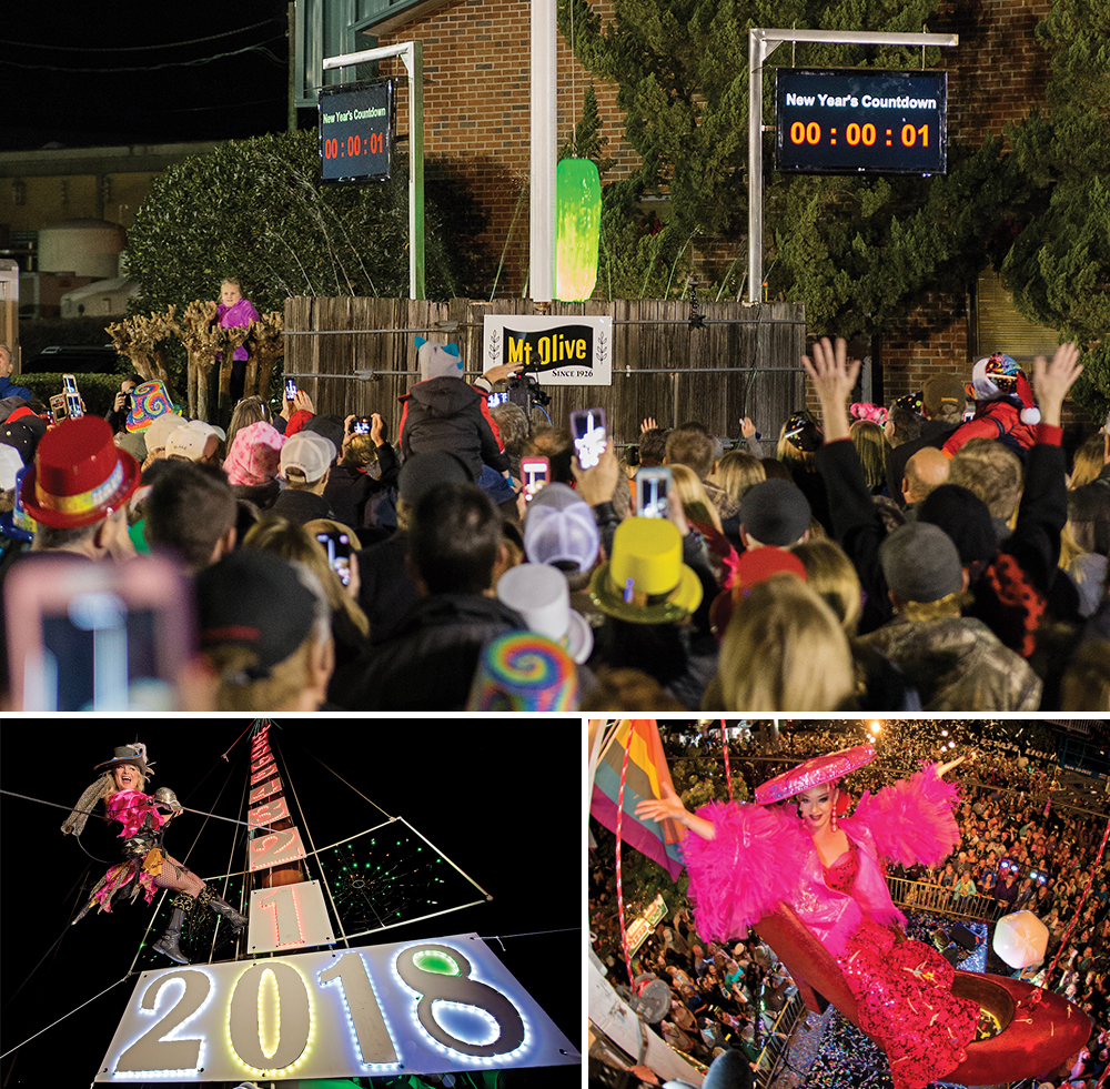 The Mount Olive Pickle Company in Mt. Olive, North Carolina, lowers a 3-foot glowing gherkin into a perfectly preserved redwood pickle tank at precisely 7 p.m. EST. That’s midnight Greenwich Time – as official as you can get – and everyone gets to go to bed early!