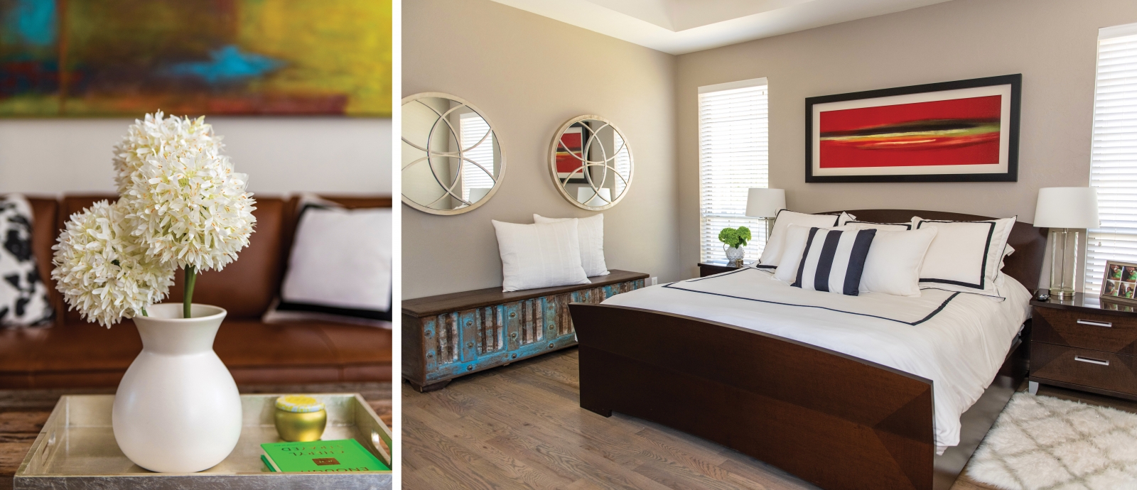 The couple have created a happy life together, whether it’s grilling outside or relaxing with friends on the weekends. Their home has become their private oasis, and next on the agenda may be a pool. But for now, they enjoy the sleek, clean designs that surround them … and cherish their alone time.