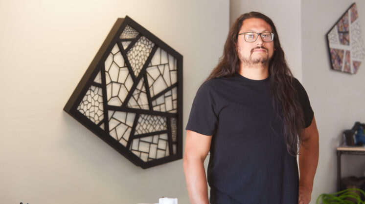 You may not spend much time pondering subatomic particles. However, artist Bryon Perdue Jr. does. His mixed-media creations — combining two-dimensional shapes, rigid lines and fluid colors — result from his ongoing fascination with scientific systems. Like an ongoing experiment, each work explores how separate entities can both stand uniquely alone and work cohesively together to form a singular unit.