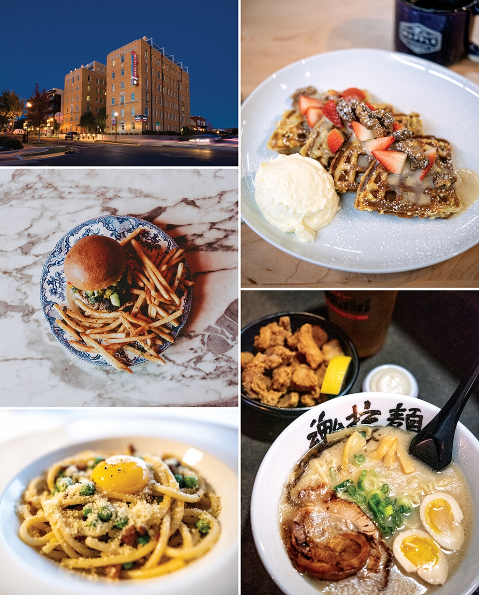 What to do Saunter out of your hotel and make your way down the street to Waffle Champion for a casual late breakfast or get some healthy fare and drink in the local atmosphere at Elemental Coffee, then meander to Bleu Garten. Although at Bleu Garten beer is king, this outdoor area hums with all kinds of casual games, from Giant Jenga to Cornhole, to pass time between meals. There is always a food truck in case you need a snack. For lunch, be internationally inspired. If Asian sounds good, grab noodles and savory broth at Tamashii Ramen House or incredible Korean barbeque bowls at Gogi Go. If it’s more a Latin American theme that’s calling to you, try 1492 New World Latin Cuisine, Café do Brasil or Barrios Fine Mexican Dishes. Next, try Fassler Hall for some (more) beer and bowling – and perhaps a sausage – before heading back to the Ambassador to polish up. Internationally acclaimed restaurants Nonesuch (make reservations well in advance), and Ludivine are just a short walk away. For some of the best Italian in Oklahoma City, hop on a scooter and proceed a little closer to Film Row for dinner at Patrono, where the sweet potato gnocchi and the carbonara slug it out for best pasta in the metro. Capitals Ice Cream is the stop for a custom dessert, and top it off with a nightcap on the rooftop at O Bar – looking out over the neighborhood whose food scene you just conquered.