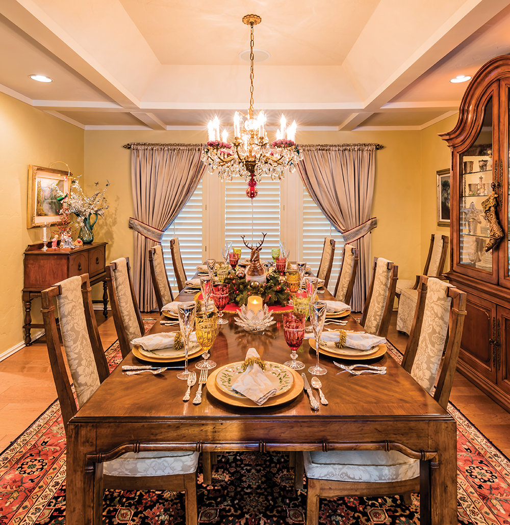 Sweet shenanigans such as these set the tone for the Christmas décor, and indeed the whole season, at the Escos’ Quail Creek home. “For us, it’s very Christ-centered. We’re very joyful, with arms wide open, full of love and generosity, because He is why we celebrate,” she says. And celebrate they do.