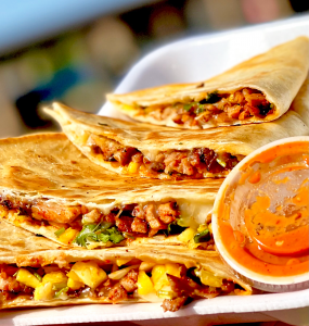 “My girlfriend and I went to Playa del Carmen in 2019, and we ate tacos al pastor every day,” he said. “I became fascinated with the Lebanese culture behind al pastor, and the food was delicious.” He also loved that the al pastor in Mexico was carved from the trompo, a vertical, rotating spit based on the design of a children’s toy: the top, or trompo in Spanish. Meat is layered onto the spit, often with onions at the base and a pineapple at the top. The meat roasts on the rotating spit, and then is carved outside-in to make tacos, mulitas, tortas, or whatever else the taqueria offers. Traditional al pastor is pork, a change made from the Lebanese spit-roasted lamb when immigrants settled in Mexico.
