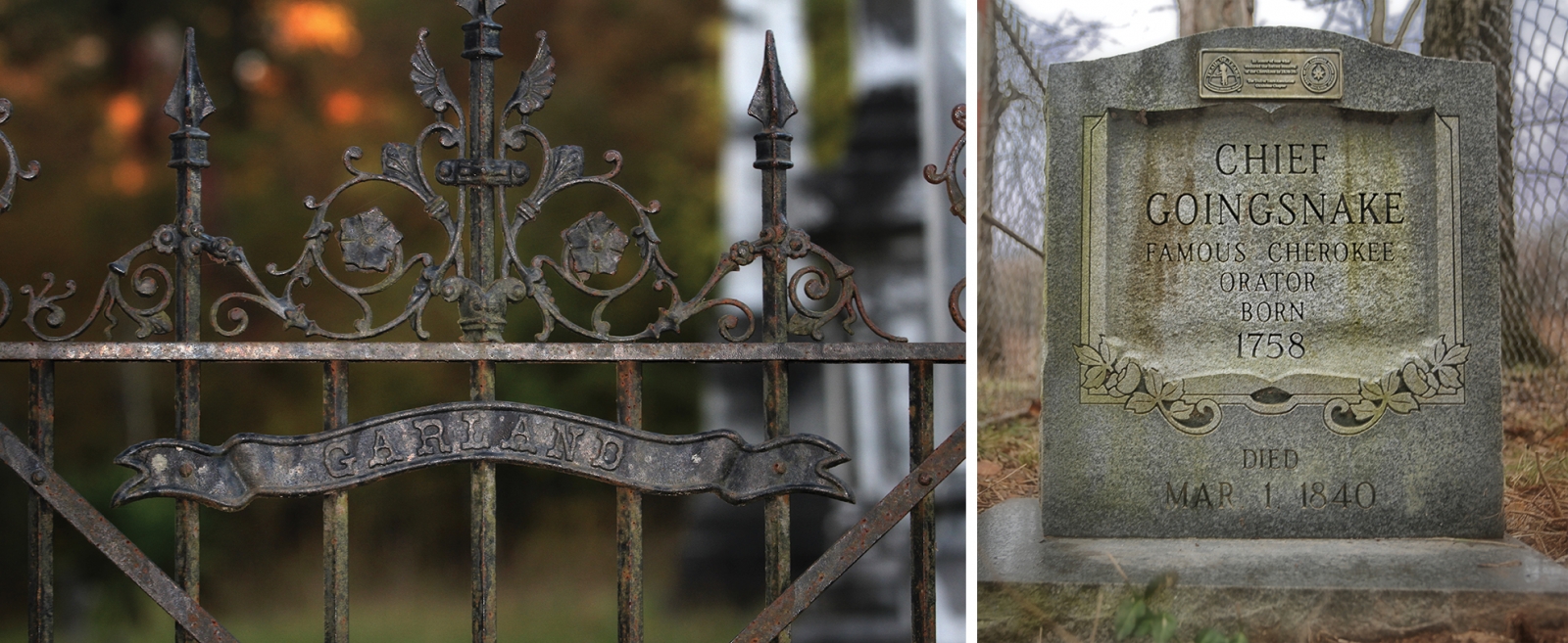 But one of the grandest burial grounds of the old Indian Territory was the Garland Cemetery in the far southeast corner of Oklahoma, tucked into a forest off a dirt road and surrounded by an ornate wrought-iron fence and giant yuccas. Established just over the border from Arkansas on land selected by one future Choctaw chief for another, its elaborate Victorian-era wrought-iron fence protects modest gravestones and a dozen marble tributes, some topped by obelisks as tall as three men.