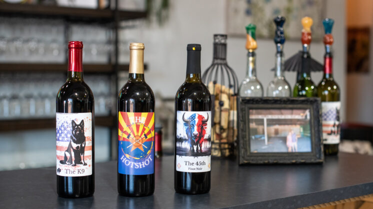 Other varieties are as quenching as they are heartwarming, Like The Hotshot, a Tempranillo, rich with notes of red berries and leather, inspired by a group of firefighters who lost their lives in a fire in Prescott, Arizona. Roger being a former firefighter himself, all of the names of the fallen firefighters are listed on the back of the bottle, and all firefighters, military, first responders, nurses and teachers get 10% off on this, and all wines. Then there’s The P, a Peach Chardonnay named after both the town of Prescott and the owners’ daughter, which eschews excess sugars in favor of fresh fruit, nectar and a clean, crisp finish.