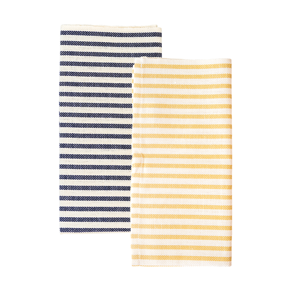 Busatti blue and white and yellow and white stripe napkins, $20 from Bebe’s