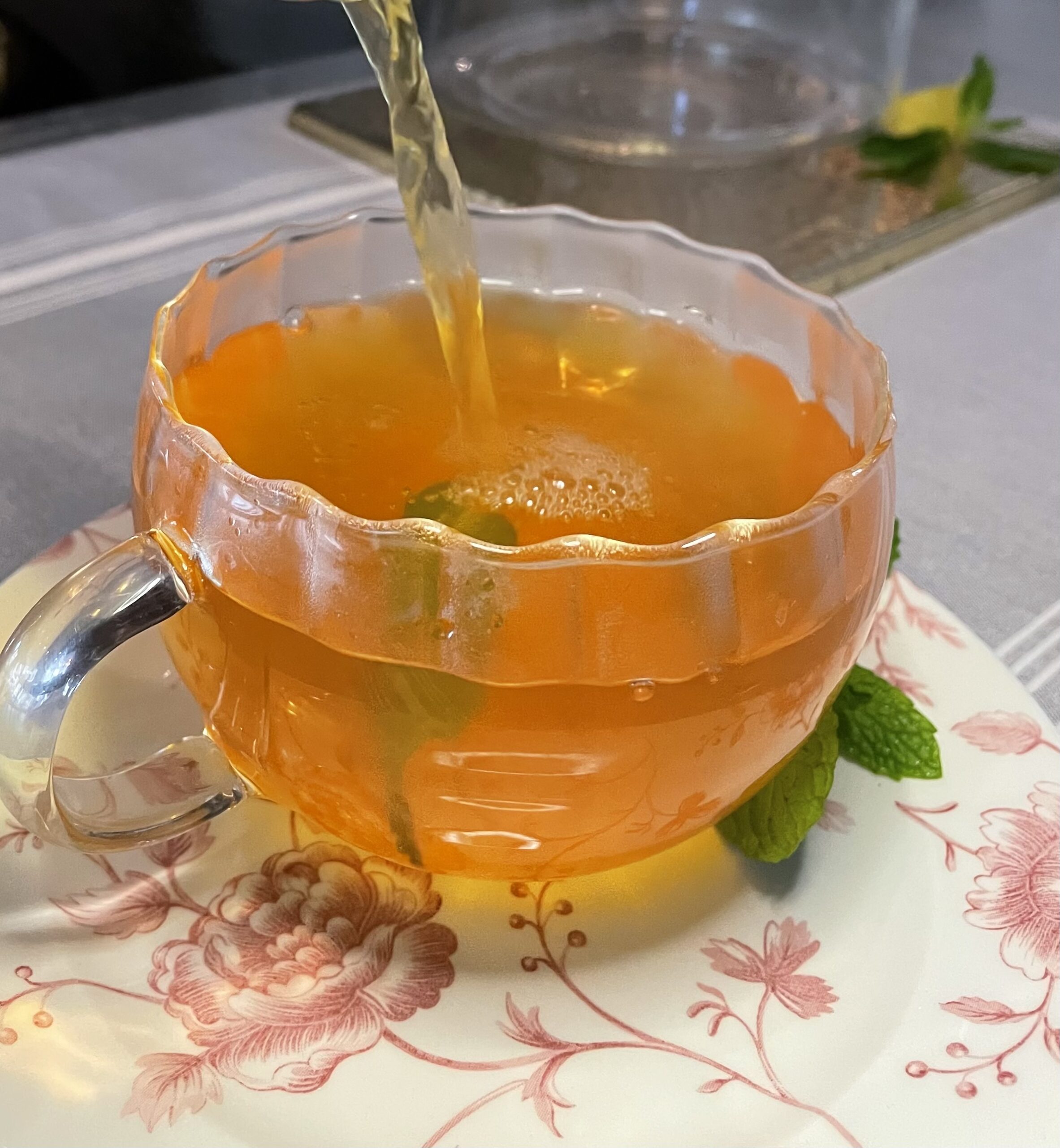 Rather than just pour whisky in at the last minute, Cunningham steeps all the ingredients — whisky, tea, fresh mint, lemon expression and raw honey — in the siphon, a device that relies on a vacuum and gravity process to brew or steep grounds-free, aroma-rich coffee and tea. For Nala’s Voice, he uses loose-leaf tea, either black or green depending on the weather or customer’s preference.