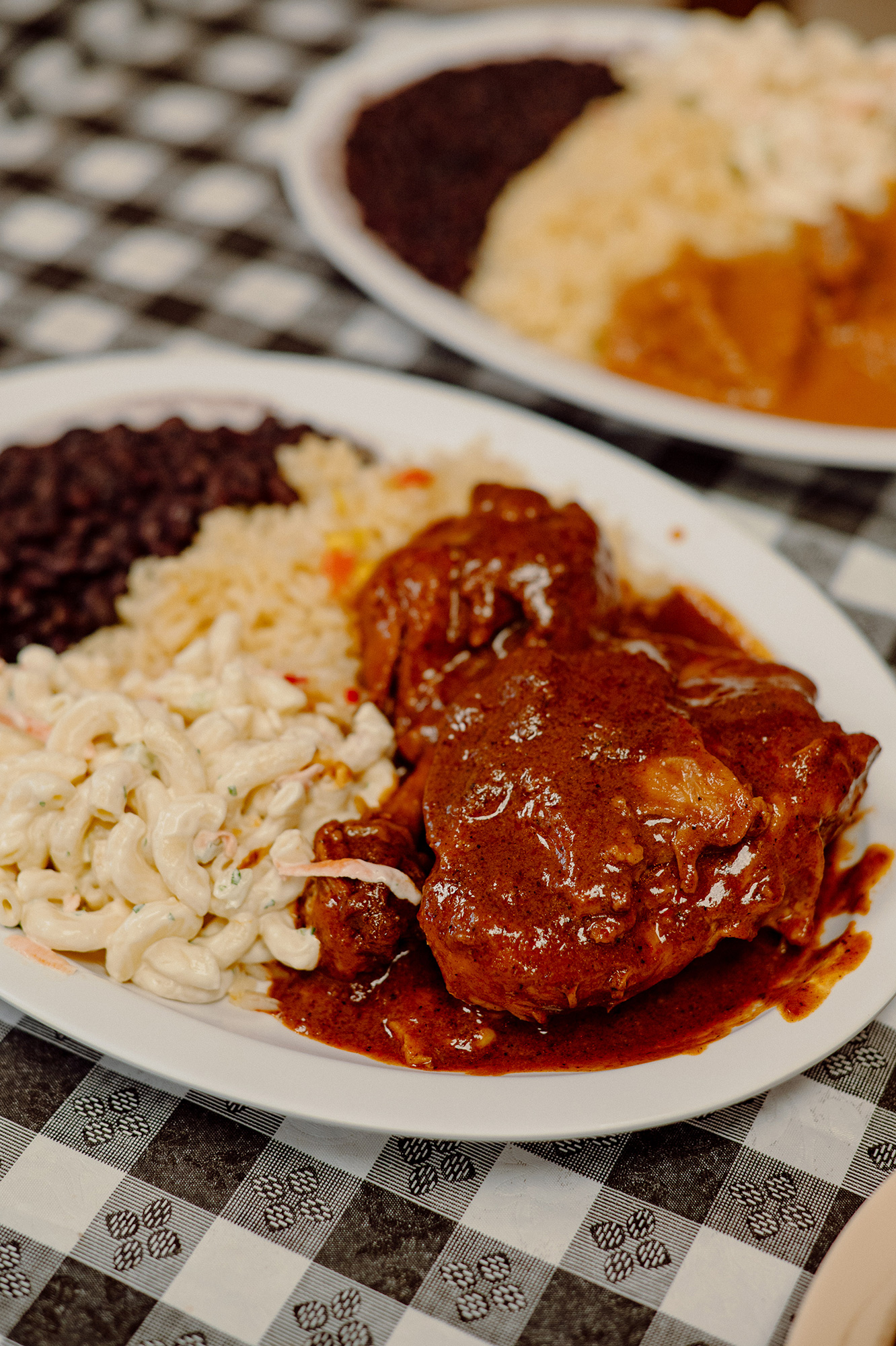 The closest in Oklahoma City is the line at Tienda Guatemala. Hang a hard left inside the store, and you’ll see the kitchen, usually with a cluster of women slapping out tortillas and pupusas from a mound of masa in the middle of a prep table. At the east end of the kitchen is the hot line, and daily features are pepian de pollo, estofado, costillas de puerco and a shredded beef dish much like deshebrada or machaca, all served with rice, black beans and a surprisingly familiar macaroni salad that looks ripped from a local church potluck.