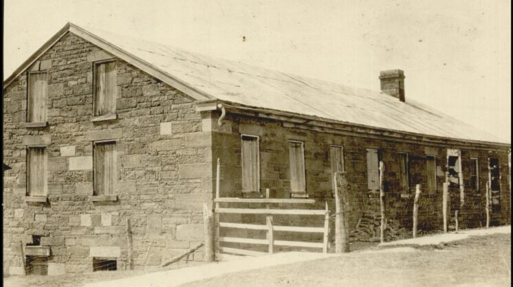 Situated on the Grand River near its confluence with the Verdigris and the Arkansas Rivers at a place known as Three Forks, Fort Gibson was farther west than any other military post at the time. Its nearby boat landing and easy river navigation were important, but the location soon proved a poor choice: The log fort was built in a low area that often flooded, creating stagnant pools of water that caused illness and death among the troops. Rotting logs needed constant repair. One officer described the location as “the bottom of a sinkhole.” During a 5-year period, deaths totaled 500.