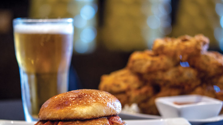 Speaking of which, the food is quite good, with a menu that’s a culmination of all the decades of Shadid’s catering experience and covers a lot of bases – chicken wings to a sampler plate of Mediterranean appetizers, and a salmon filet to a house salad topped with seared tenderloin. Beef is the prime mover in two of the menu’s brightest stars, in fact. The Nomad burger’s sautéed peppers and onions and melted mozzarella are nice, but it’s the fried pepperoni (a delicious nod to one of the former restaurant’s house specialties) and heavenly garlic tomato sauce that immediately make it one of the city’s best burger options. Messy, but spectacular. If you want to opt for a more Southwestern flavor profile, get the massive serving of tender, crispy-coated chicken fried steak doused in a nicely balanced poblano-cream reduction. “It is our best seller,” says Shadid. “That and the Nomad burger. And the arancini.” Specificity aside, he continues, “I’m a chicken fry fan” – and it shows.
