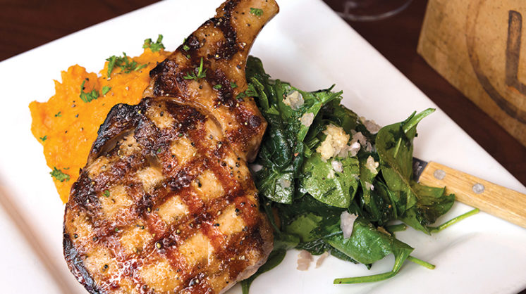 While the menu is fairly broad and they put on an impressive brunch buffet, they’re really best known for their rotisserie and wood-burning grill. This makes it easy to recommend the Rotisserie Pork Chop – what you might think of as the best of both worlds. The thick slab of protein spends the night before soaking in a special brine, takes a few laps on the rotisserie until it’s cooked through and then (as you can see from the sear marks) finishes up on the grill. Set it off with sweet potatoes and a shallot spinach salad, and be sure to try the sauce, which is an oyster-laced brew cooked down into a thick, slightly sweet and spicy glaze.