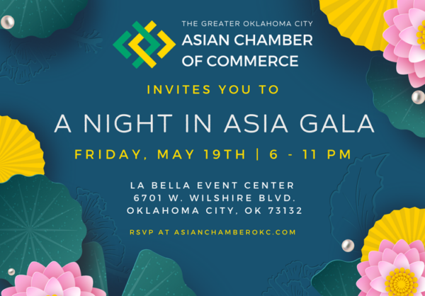 The Greater Oklahoma City Asian Chamber of Commerce will hold its biggest event to date, A Night in Asia Gala, May 19 from 6-11 p.m. at La Bella Event Center in Oklahoma City.
