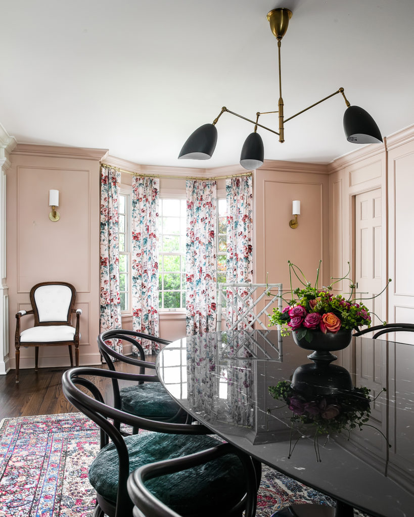 “Her style is so special,” Miller said about Keri Bradford. “She’s feminine, very sweet, but then so fearless and bold at the same time. So you see the dining room that has the chintzy floral from Schumacher that’s so pretty, but then you go back to the Cole and Son [Miami pattern] in the kitchen, and there’s your punch factor. It all flows so well together, too.”