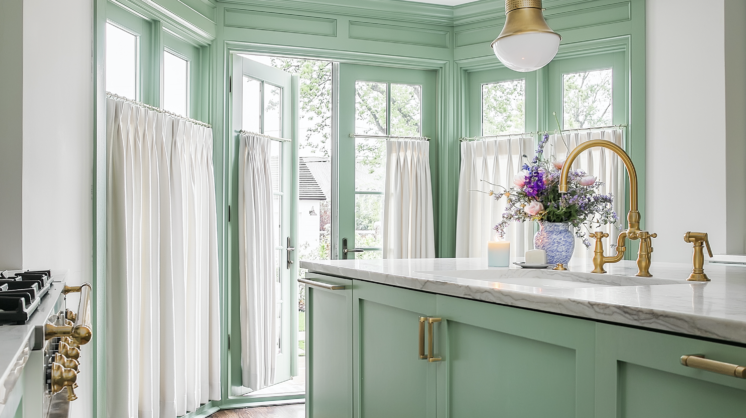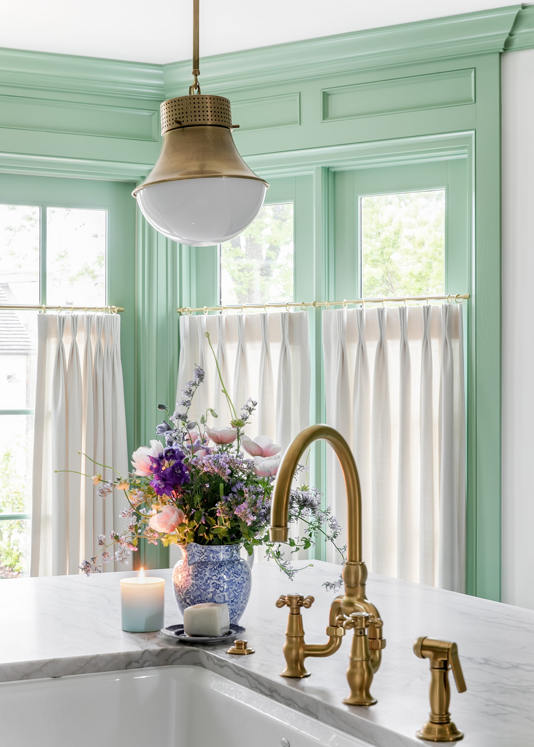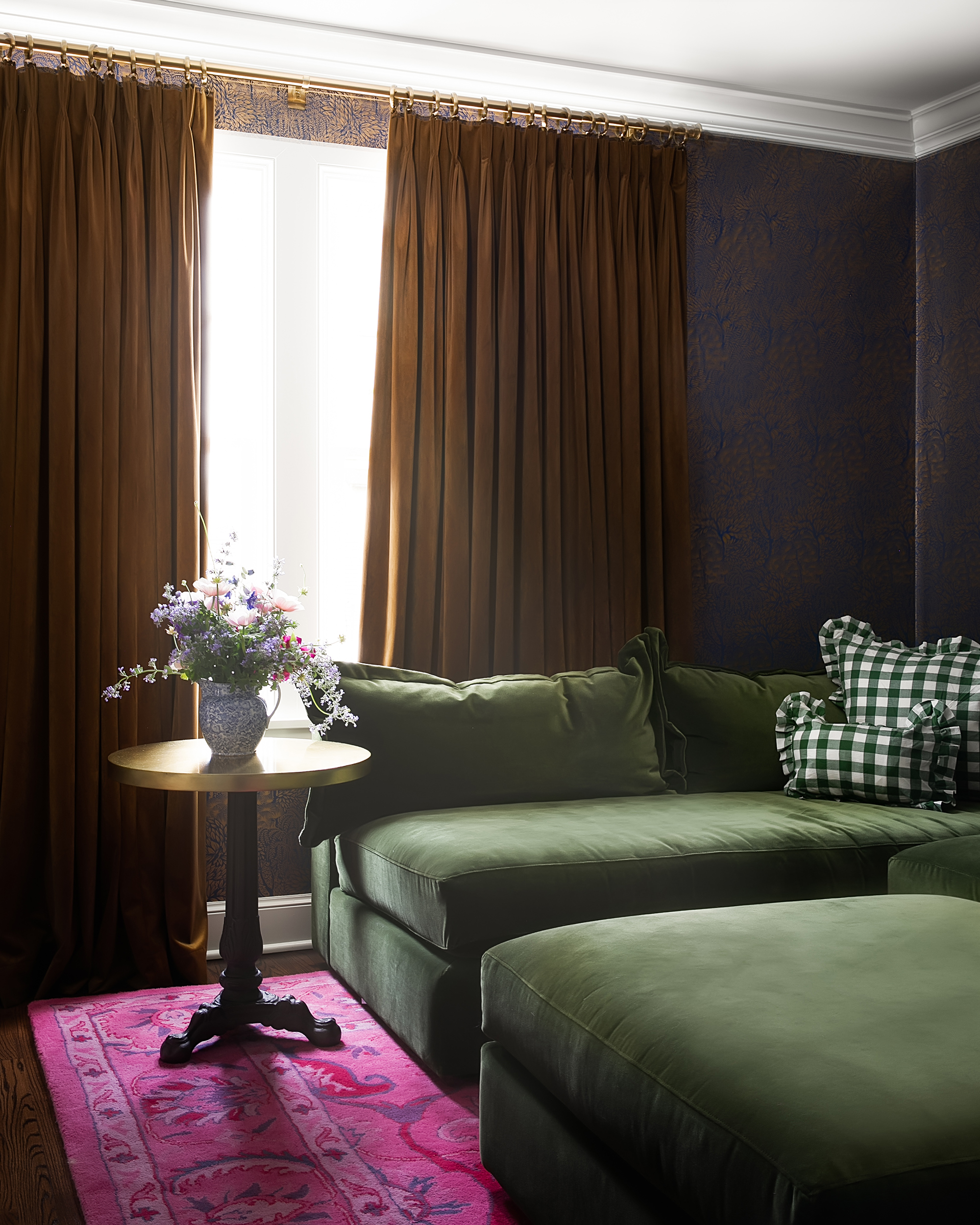 “Her style is so special,” Miller said about Keri Bradford. “She’s feminine, very sweet, but then so fearless and bold at the same time. So you see the dining room that has the chintzy floral from Schumacher that’s so pretty, but then you go back to the Cole and Son [Miami pattern] in the kitchen, and there’s your punch factor. It all flows so well together, too.”