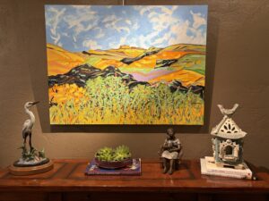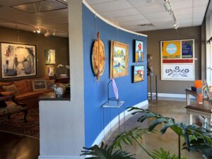 Tirrell hopes guests to the gallery will feel at home. “I hope when visitors walk through the doors they instantly feel comfortable,” she said. “We have furniture arranged in a way to help you imagine a piece hanging over your sofa in your own home. You may find something that you love, or you may just get pleasure out of seeing some fantastic art. Art is for everyone to see.”