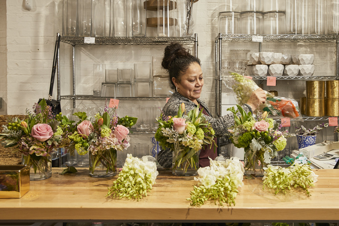 What keeps us most busy are the day-to-day deliveries to private residences. We have customers who have us come monthly, bi-weekly or even weekly to change their flower arrangements. There is so much nuance to it. I have one customer that just wants a bucket of fresh flowers delivered so she can arrange them herself, and other customers who want me to bring completely new arrangements each time. My favorite part of the business is creating flowers for individual homes.