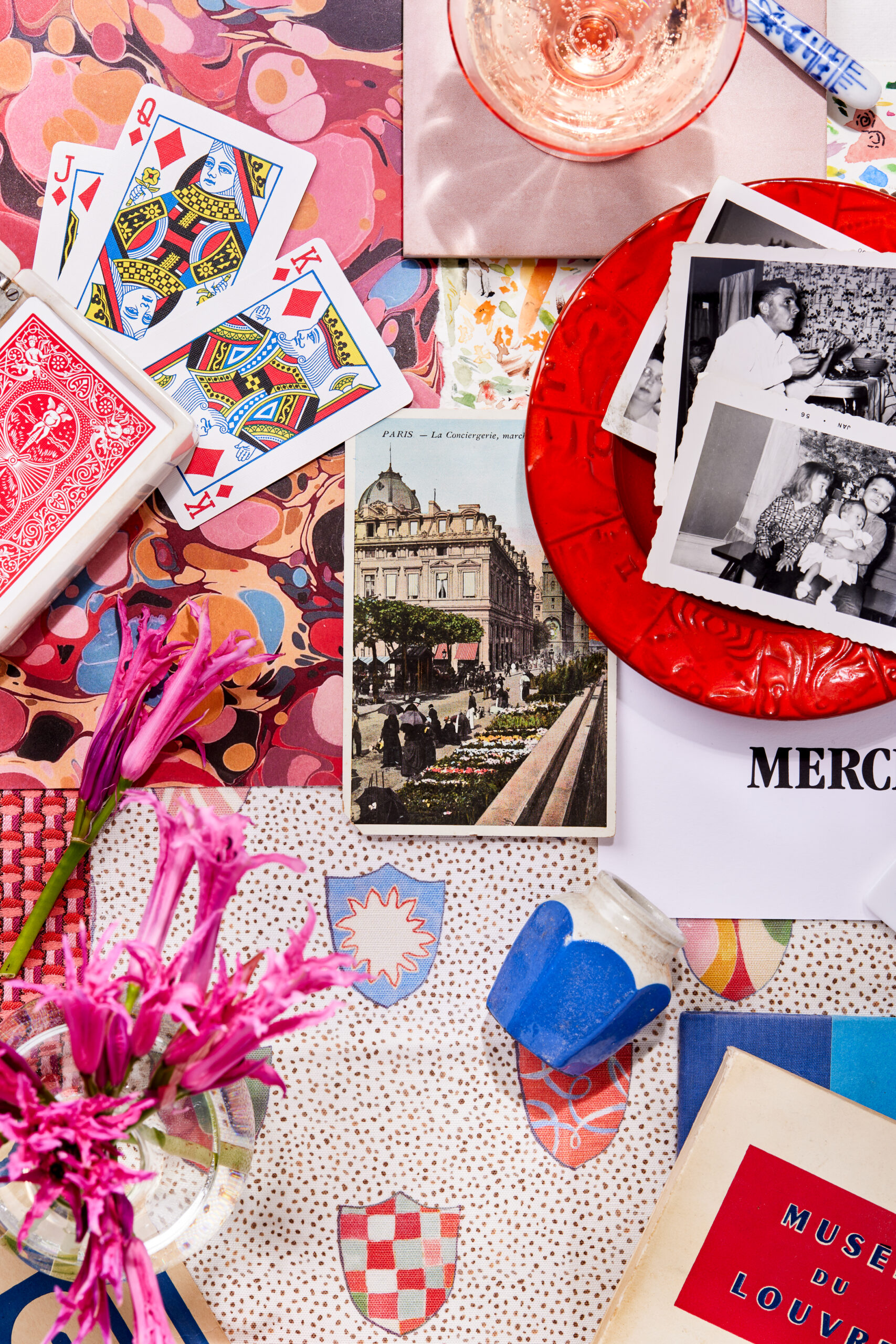 The bright hues of cherry red, rose, cerulean blue and turquoise were our guides for inspiration — not only for this moodboard, but also for the tablescape on this issue’s “Gatherings” (page 57)