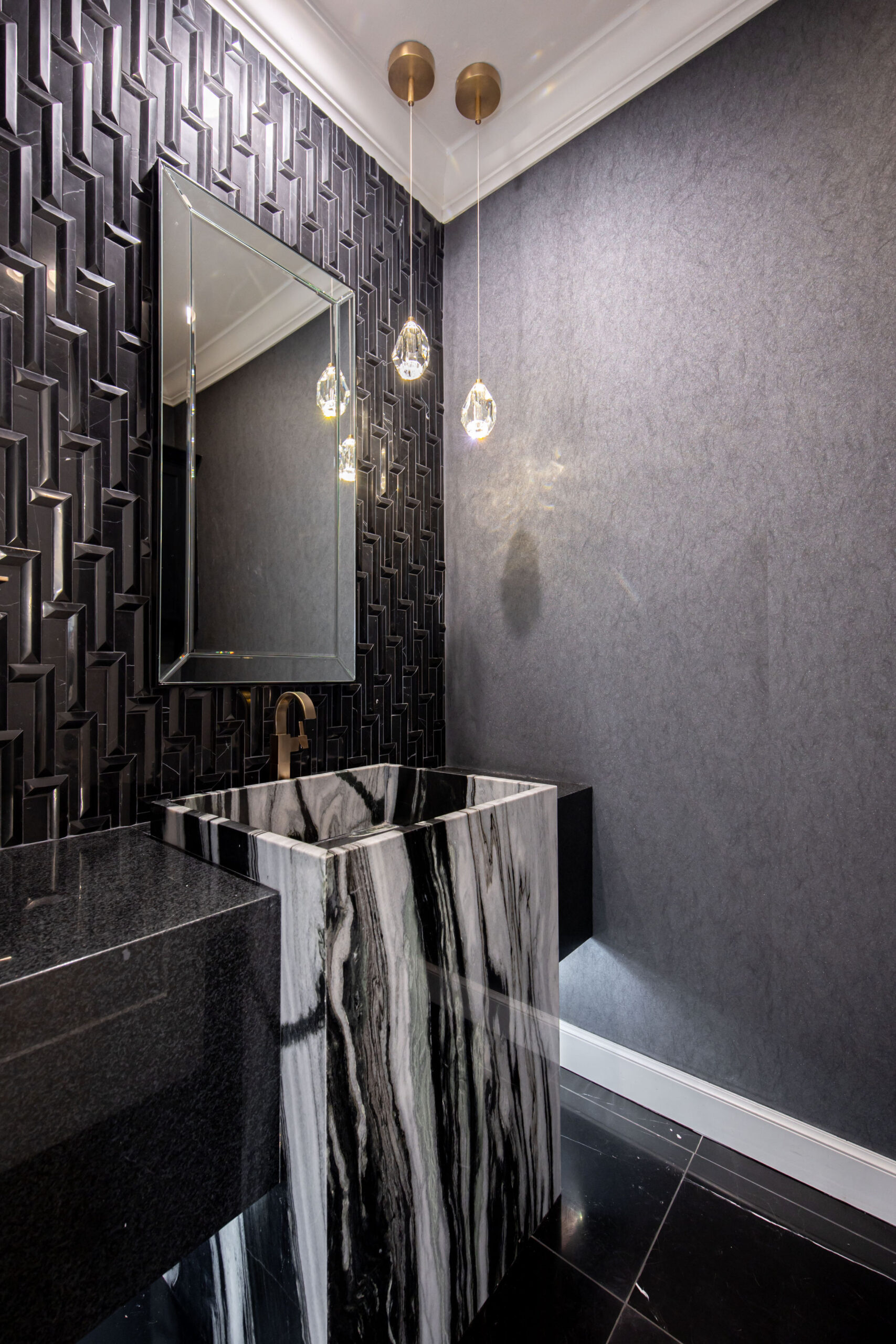 “We accomplished a touch of glam and femininity through the light fixtures that we chose,” said Rickey.
