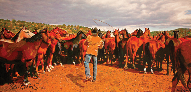Trust extends from cowboys and cowgirls on the Western frontier to their most valuable companions and vehicles, the horse. Kristen Vails has devoted her entire body of paintings to these majestic animals. Growing up in Piedmont, Vails fell in love with horses. And after leaving home to study art at the University of Oklahoma, she began painting horses as a way to remain connected, in a sense, to the animals she missed back home.