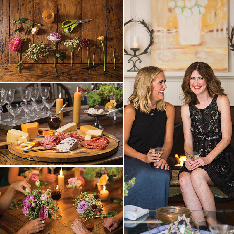 The best thing you can do when hosting a party is to relax. If you are enjoying the time, your guests will as well. Eat in a living room or around the house somewhere else to keep up the relaxed atmosphere. After a while, gather at the dining room table where the flower arranging can begin. I provided small vases and a pair of floral shears for each guest, and we clipped blooms and worked on the arrangements together. In the end, each one was unique and beautiful and made the perfect take-home party favor. After the flower arranging session we returned to the fireside for dessert and rosé and the music changed to a little more of the upbeat type, but exactly what it was is a secret that must be kept. At the end of the evening the conversation turned to when we were all going to do this again. I’m taking that as a confirmation of a successful party and definitely one that I plan on duplicating!