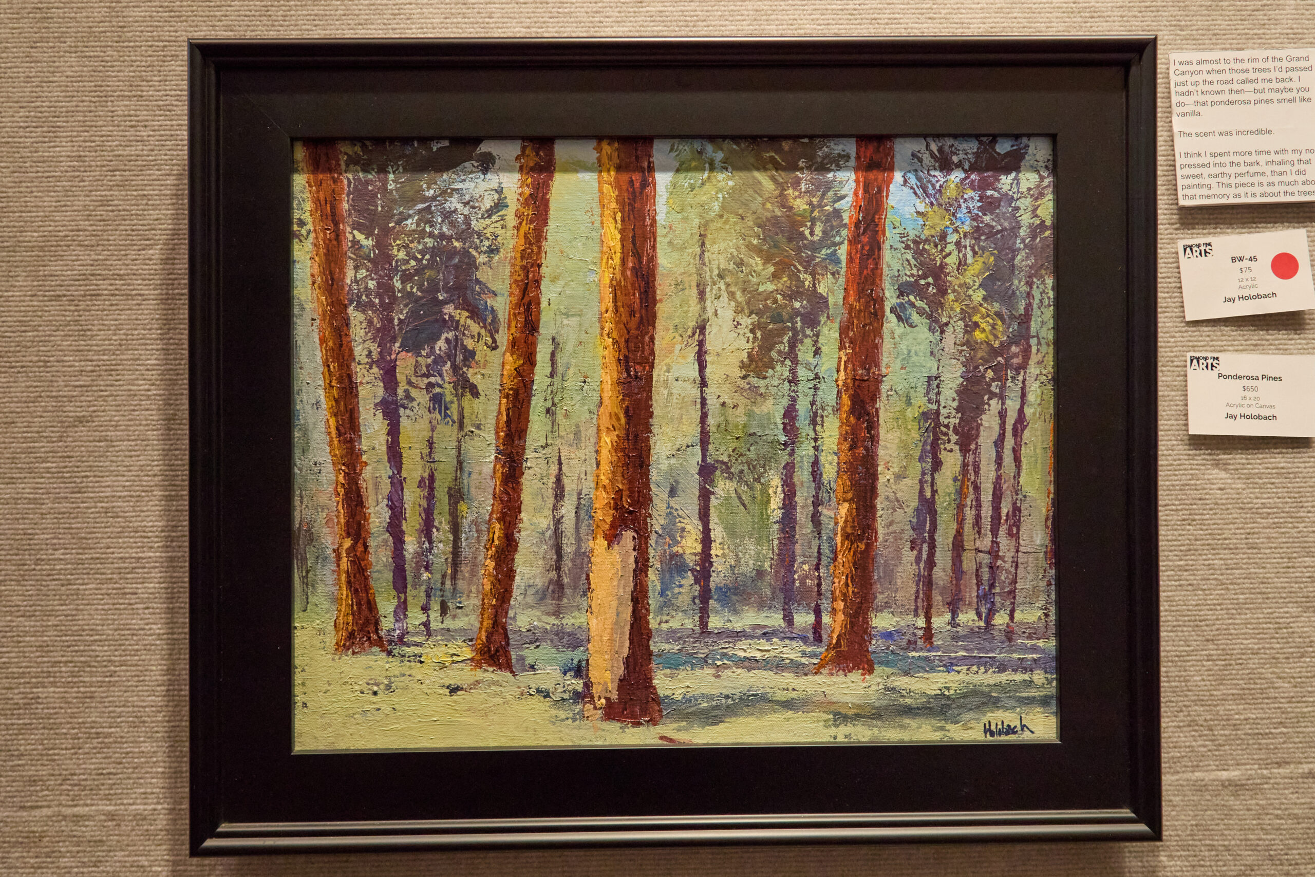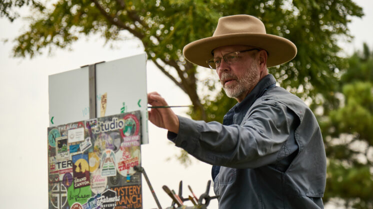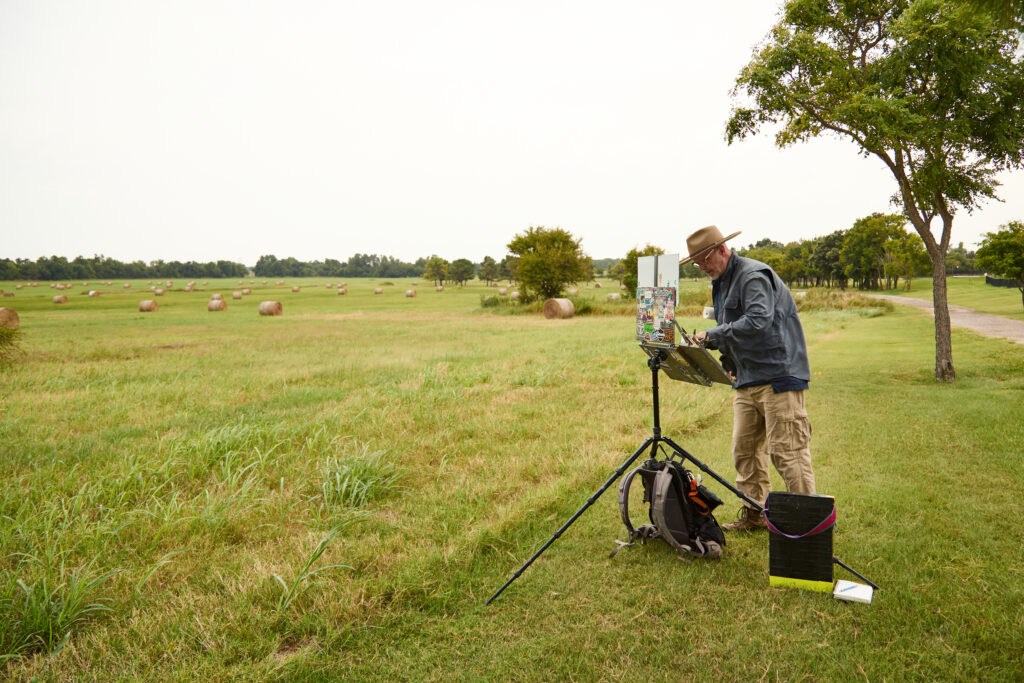 Jay Holobach: When I’m on location, if I see something I like, I’ll stop, drop and paint … I’m not the first person here, obviously, and these trees have been here for 50, 60, 100 years. Who else has walked by here? Did they see the same thing that I am now seeing—the filtering of the dappled light on the ground? I want to capture that to give to somebody who maybe has never been there before, so they can feel like they’re standing there. They can feel that vastness, that emptiness or the stillness; that’s what I’m trying to convey in my artwork. There’s always a story.