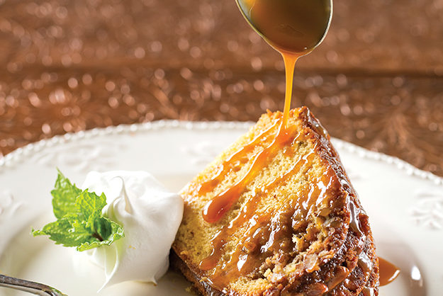 Allow the cake to cool 5 minutes and then invert cake onto a serving platter. Brush cake with glaze all over. Continue until all of the glaze is used. Cover and allow to sit for at least 24 hours before serving.