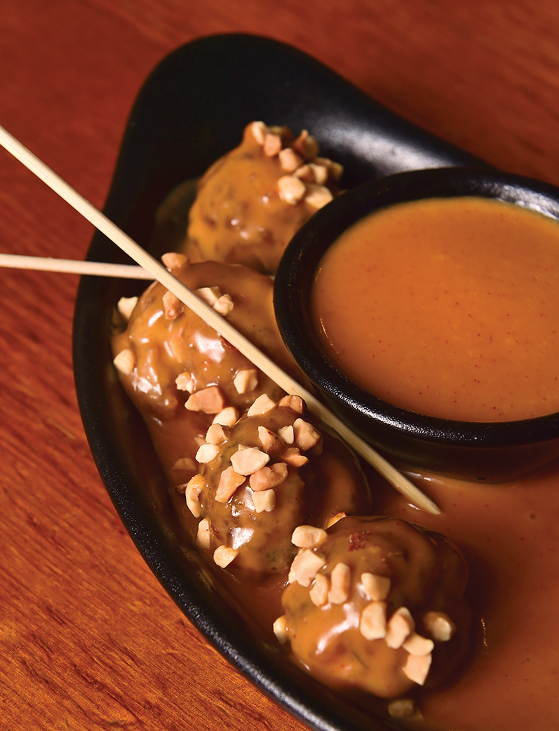Case in point: The three options for appetizers all orbit the meatball but take the concept in deliciously different directions. The Lollipops present small versions on sticks bathed in a preposterously good peanut sauce that’s savory as it hits the palate and gets spicier and more delicious the more you eat. Our Man From Japan has a yakitori sauce underneath and a chimichurri on top for a simultaneously sweet and piquant taste.