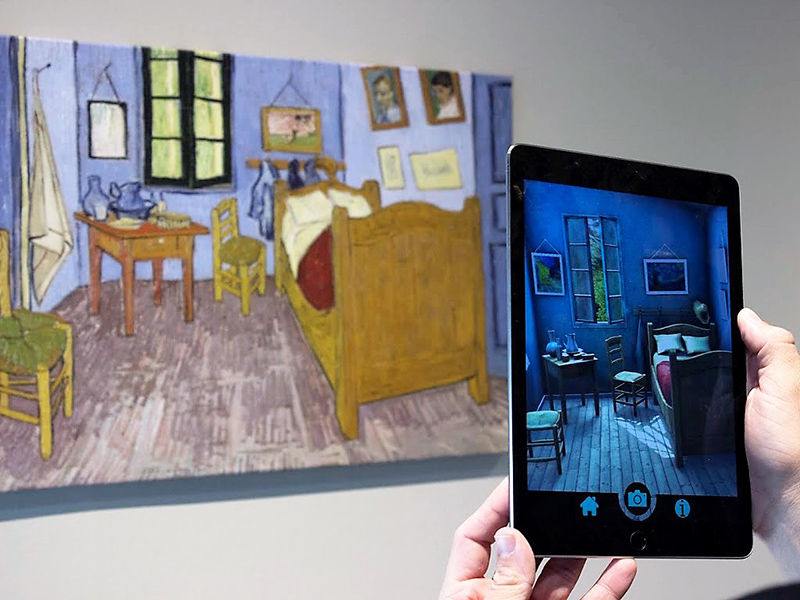 See a giraffe walk down a hallway, take a look around Vincent van Gogh’s famous Bedroom in Arles, watch a space shuttle launch as displays are brought to life with the aid of a smartphone or tablet.