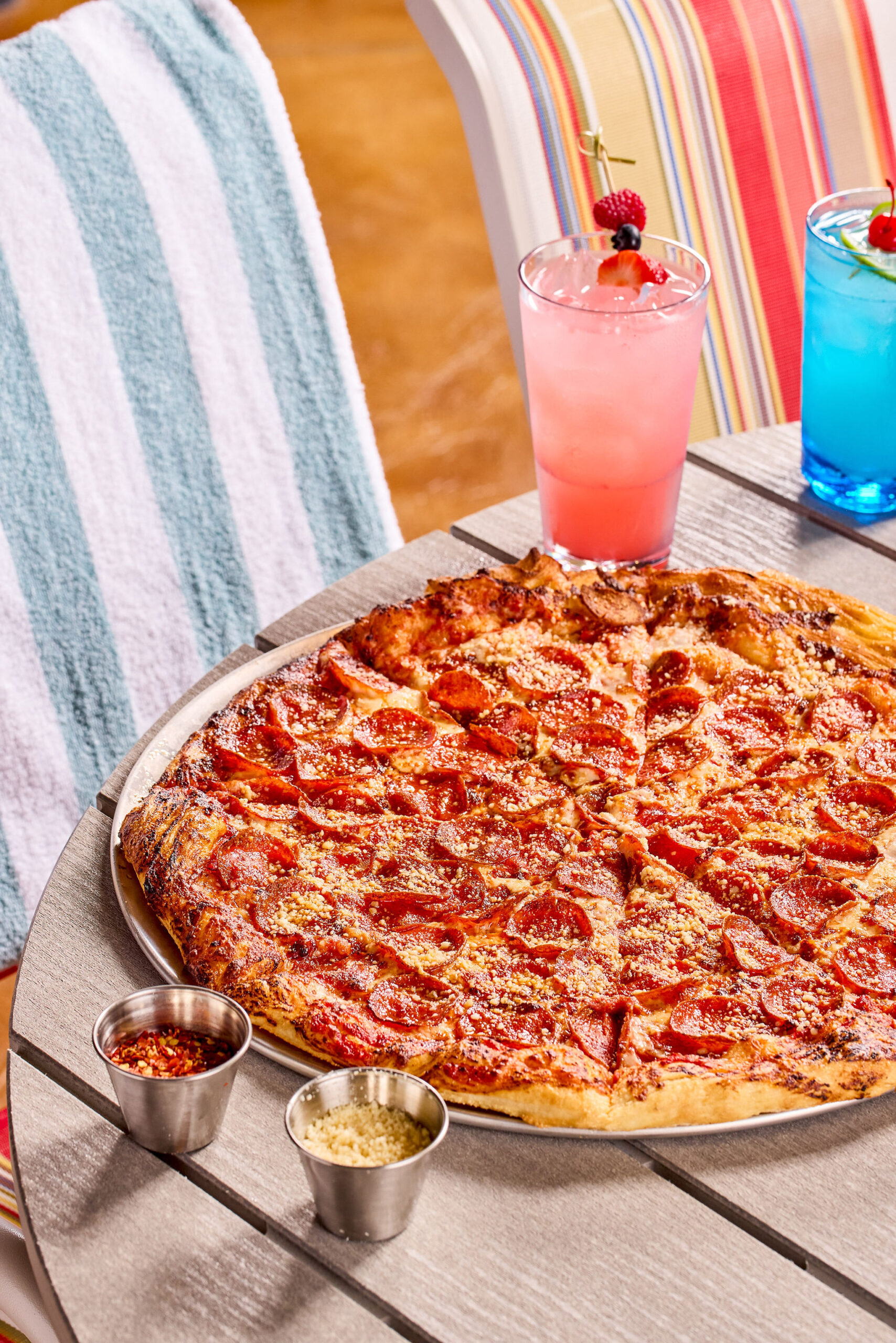 The newest dining addition is Curveball Kitchen, a neoteric sports bar with batting cage-like baseball simulators and food that the chef billed as “comforting, exciting and fun,” like burgers, pretzels and mac & cheese. “Everything we do, we cook with love,” Jonilonis said. “We have that emotional attachment to a really high-quality product—serving beautiful food that’s an enhancement to the water park experience.”