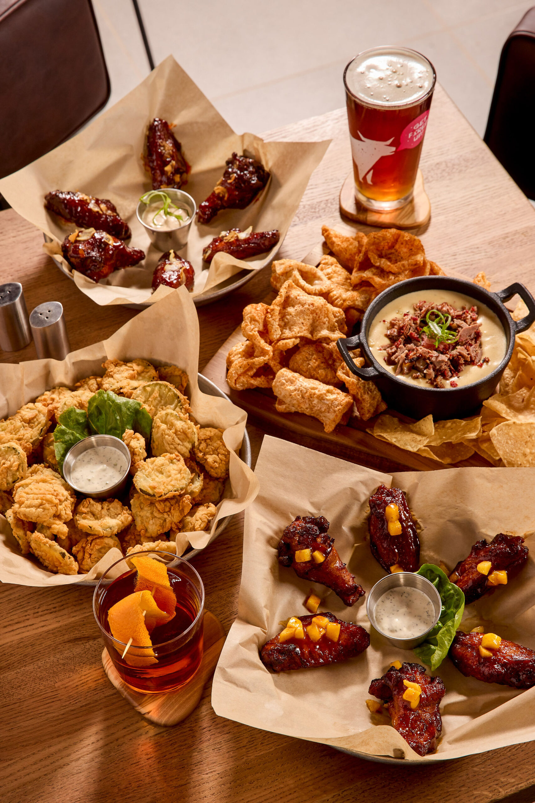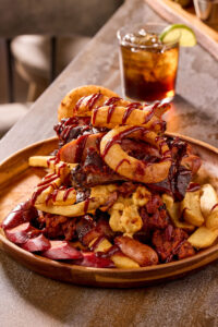 All but three of OKANA’s eateries—Sliders, Pie Lab and Kaya at the indoor water park—are accessible to the public. These include Jack Rabbit, a gastropub perched on the river and offering chicken-fried Wagyu steak, pastrami Reubens and ale-steamed mussels with stunning skyline views that practically glow at sunset. Down the hall, Chido Tacos X Tequila pairs premium tequilas with Mexican fare like carnitas tacos, poblano-braised chicken enchiladas and sopapilla cheesecake. Just outside the hotel, Smokehouse Social offers sports simulators and burly barbecue, like slow-smoked brisket, wood-grilled rib-eye platters and burnt-end queso, in a convivial setting akin to a lavish backyard cookout by the pool.