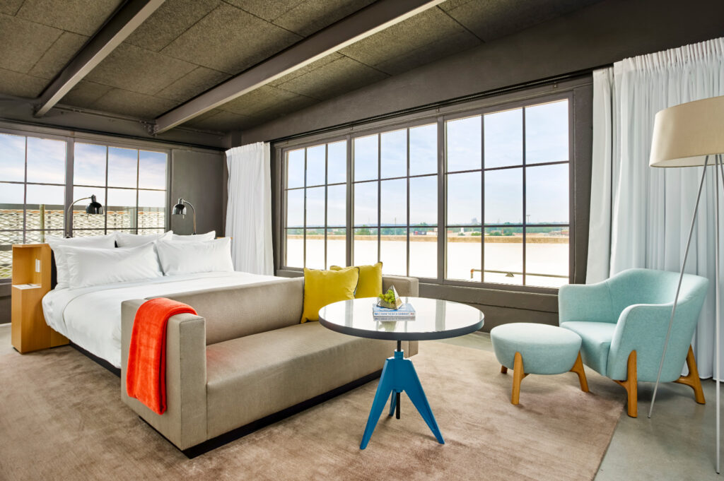 The 21c Suite blends modern, industrial and colorful design elements.