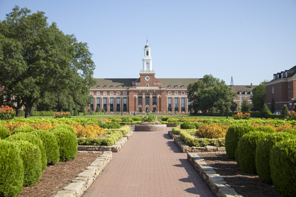 The Edmon Low Library is the centerpiece and heart of the Oklahoma State University campus in Stillwater, but it also embodies the intellectual and cultural aspects of the school. It’s a feeling that comes across immediately upon entering the library and seeing the grounds. Low, head librarian from 1940 to 1967, was instrumental in the design. He also pioneered the open stack system which allowed visitors to retrieve the books they wanted without the help of staff. Browsing was encouraged. The library has six floors with a total of 5.38 acres of floor space and welcomes more than 1 million visitors yearly. It houses three galleries, with a fourth opening this fall. Outside is the iconic black granite fountain weighing three tons. Two-story marble columns and a grand staircase greet visitors at the South Lobby, and the North Garden is part of the campus’ native planting corridor. The bell tower features a digital system that chimes the hour and class changes. As expected, it often plays the Alma Mater and Fight Song, along with carols and other tunes.