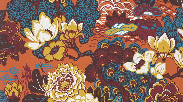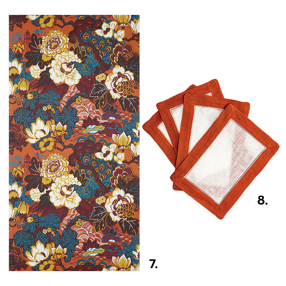 7. Shanghai Peacock wallpaper in cinnabar (also in fabric), price upon request As wallpaper, this beautiful pattern could be the perfect way to change the feel of a powder room; the same pattern is also offered in a fabric, for recovering and repurposing a beloved piece of furniture, or perhaps as curtains. From Ketch Design Centre.