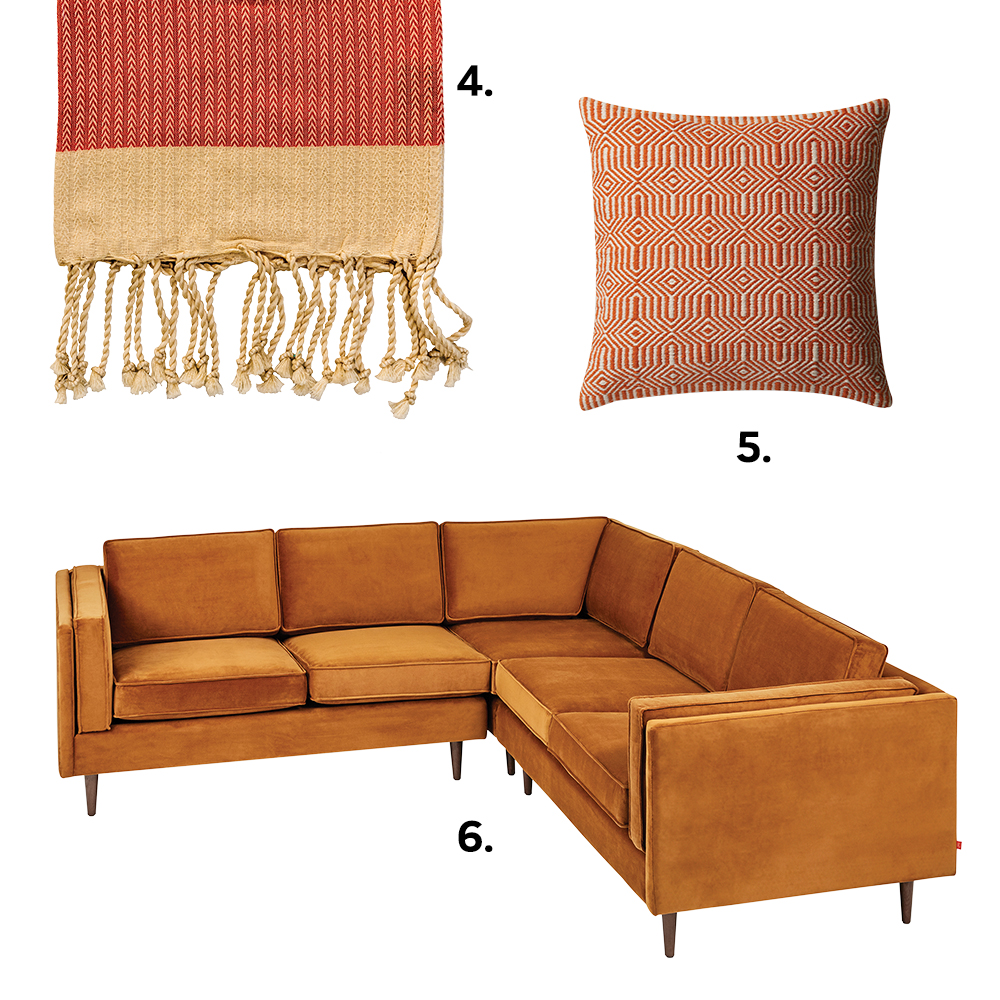 6. The Adelaide bi-sectional, $3,295 This classic midcentury bi-sectional OR sofa is nothing short of a statement piece, and in “velvet rust” as shown, the color is just as much of a statement. From Urbane.