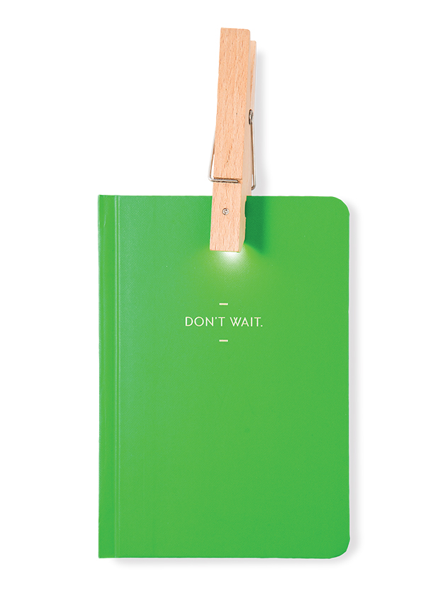 10. Emerald Don’t Wait notebook with clothespin clip light from Plenty, OKC
