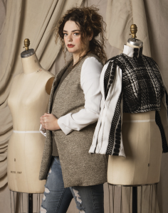 She’s already getting national attention. Twice she has won the prestigious Fashion Scholarship Fund Case Study Scholarship, a program that supports promising fashion students. For the most recent study, applicants were challenged to design a line dedicated to satisfying Generation Z’s unique buying habits. “My line revolved around a recyclable textile I designed,” she says. “The textile is made from leftover fabric waste that is created when factories cut out patterns for clothing production.”