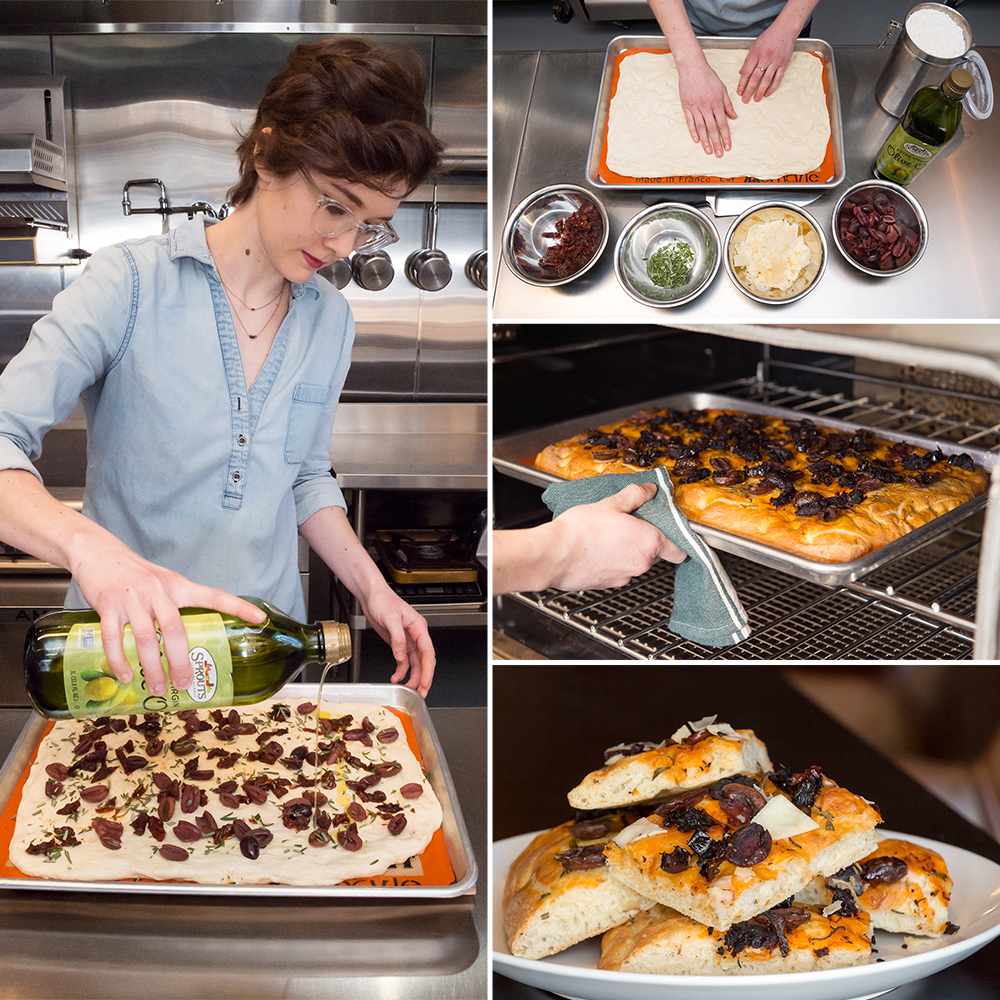 For her recipe, Hirschman chose focaccia bread, for two reasons: “It’s hard to mess up, and bread is my favorite thing to make. Kneading it and shaping it are some of the most rewarding things for me. The feel of the dough, flour everywhere, the science of baking, achieving balance of water to flour to yeast … and it’s delicious!”