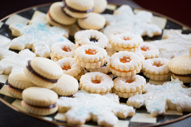 Linzer Cookies: Cut out cookies using a Linzer cookie cutter. Bake for 7-8 minutes and cool as above. Spread the non-cut out cookie with the jam of your choice (I love apricot and strawberry.) Top with cut cookie and sprinkle with powdered sugar.