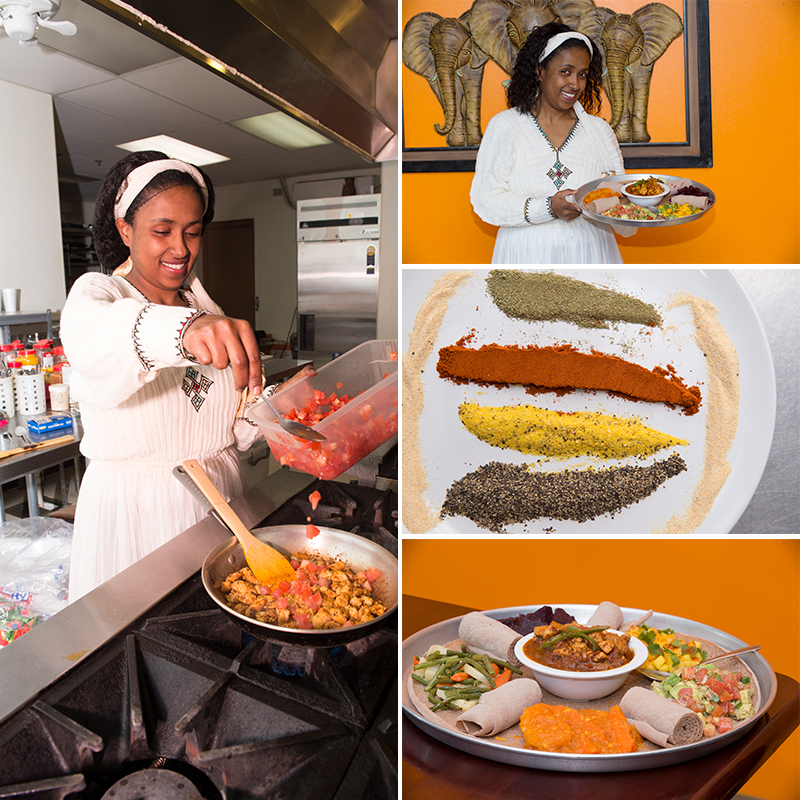 She opened a home catering business that grew popular enough to lead to a restaurant, Haiget’s, which serves traditional Ethiopian and Kenyan food. Ethiopian cuisine is based around injera (flat sourdough bread torn into pieces and used as a kind of edible spoon), and the focus is on the experience of dining, not just the food.